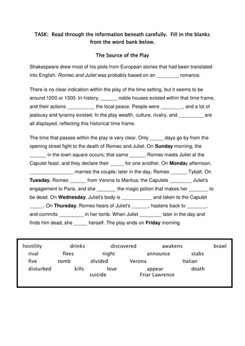 Romeo's mood and its origins are revealed. The love that could never be accepted by each other's family led to tragic deaths. Romeo and juliet begins as the chorus introduces two feuding families of verona: Romeo and juliet the story takes place in verona, italy, during the fifteenth century. Romeo and juliet themes worksheet.